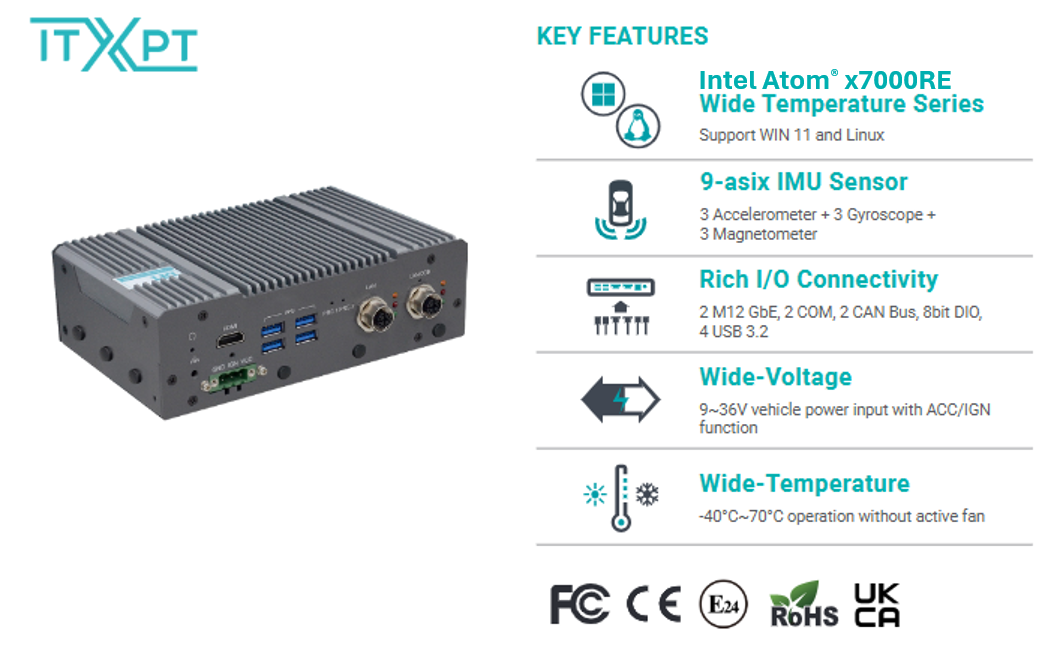 As an ITxPT-certified platform powered by the Intel Atom® Amston Lake x7000RE series processors, the VC700-ASL serves as a standardized computing hub that simplifies multi-vendor integration and accelerates deployment validation for public transport.