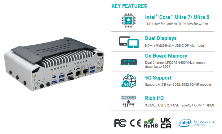DFI 的 EC70A-MTH 超緊湊無風扇工業系統專為高要求的工廠自動化與 AMR(自主移動機器人)部署而設計,結合 Intel® Core™ Ultra 處理器效能與緊湊、堅固、無風扇的機構設計,在空間受限、且對耐用性與稼動率要求嚴苛的環境中,提供可靠的邊緣 AI 與即時工業控制能力。該平台同時通過 Intel® ESQ 認證、符合 Metro AI Suite 裝置資格,進一步展現其已就緒,可支援穩定可靠、工業等級的邊緣部署需求。
